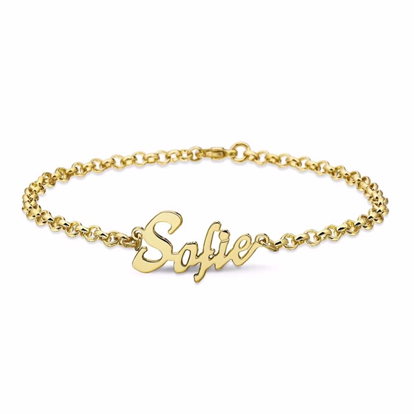 Guld: Guldarmbånd til navne er ofte dyre, og deres pris afhænger af guldkvaliteten og vægten. 14 karat guld vil koste mindre end 18 karat.